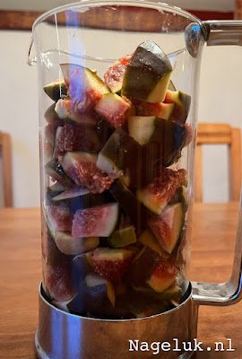 Vijgen waren al schoon geregend, ik heb ze niet meer gewassen. Ik voeg geen gist toe, ik maak gebruik van de gisten die van nature aanwezig zijn. Hoe beter je wast, hoe minder daarvan rest.